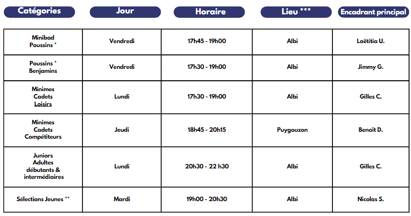 * Groupe à déterminer avec l’entraîneur en fonction du niveau et de l’autonomie