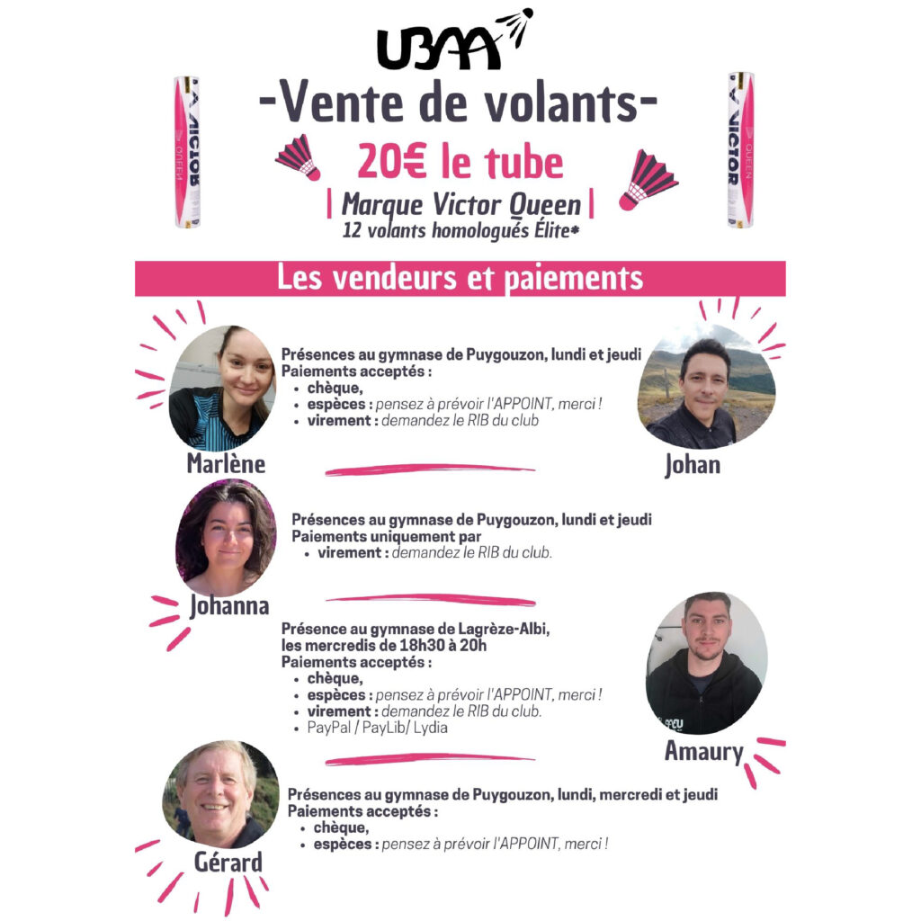 Nous préconisons l’utilisation des volants plumes (voir volants à la vente).